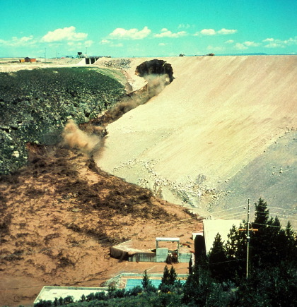 Грунтовая плотина Тэтон (США) высотой 93 м обрушилась в 1976 году, опять же после первого заполнения водохранилища. Причина – повышенная фильтрация через породы основания плотины, что привело к ее размыву. Процесс развивался постепенно, в итоге своевременно проведенная эвакуация позволила избежать больших жертв.