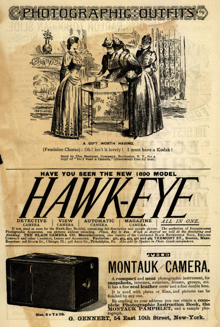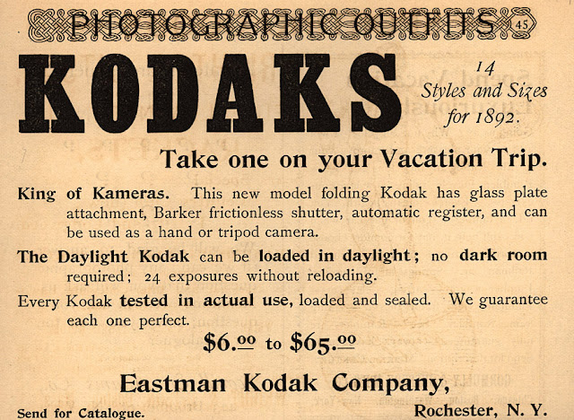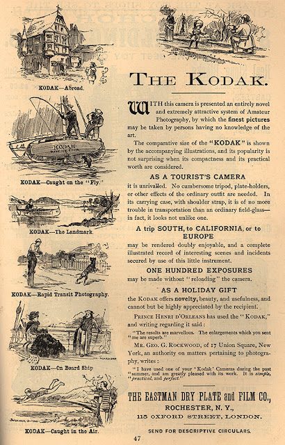 С 1885-го развернулась первая рекламная кампания по продаже новой светочувствительной пленки. Годом позже Истман запатентовал особую камеру-ящик для роликовой катушки на 48 негативов 4 x 5 дюймов с фокусирующей оптикой.