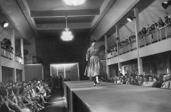 Во второй части фотографий московского показа мод Dior fashion show 1959 года посмотрим черно-белые снимки Говарда Сочурека, фотокорреспондента журнала "Life". Здесь не только прогулка французских моделей по советской Москве, но и сам показ: модели, организаторы, подиум, зрители...